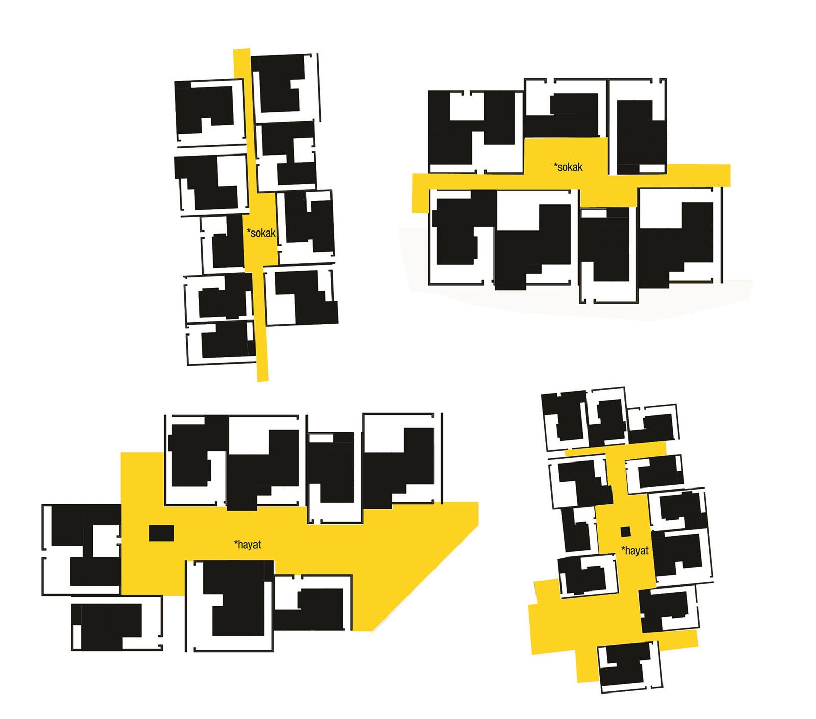 Öneri Doku: Geleneksel ve bugüne ait olan doku katmanları çakıştırıldığında; geleneksel dokudaki mekan/perspektif zenginliği ile bugününe ait ulaşım/dolaşım sistemlerini bir arada düşünülmüştür. Geleneksel dokudaki meydan, sokak, çıkmaz gibi kentsel mekan ögeleri kurgulanmış, bunlarla birlikte ihtiyaca cevap verecek şekilde ancak sınırlandırılmış bir otoyol örüntüsü oluşturulmuştur. Biçimsiz geometrilerdeki parseller üzerine konut yapısı yerleşir. Konut parselin bir tarafına yaslanarak sokak ile evi ayıran duvar arasında bahçe mekanını oluşturur. Ev ile bahçe duvarından oluşan yapı, farklı biçimlerde tekrarlanır, bahçe duvarından yahut bina yüzeyinden diğer ev ile birleşerek “yapı dizilerini” oluşturur. Farklı yapı dizileri de bir araya gelerek “yapılar topluluğu” nu ortaya çıkarır. Sokak, çıkmaz, meydan ve mahalle oluşmaktadır.