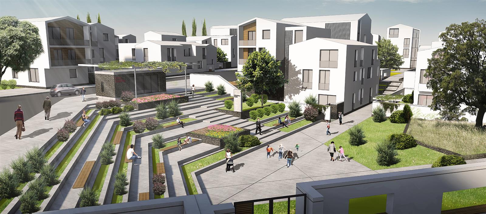4. YEŞİL BANT: Omurganın etrafı, proje alanını boydan boya kat eden bir yeşil bant ile çevrilir. Yerleşimin tümünde yeşil dokunun sürekliliği sağlanır.