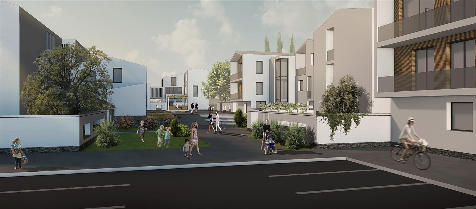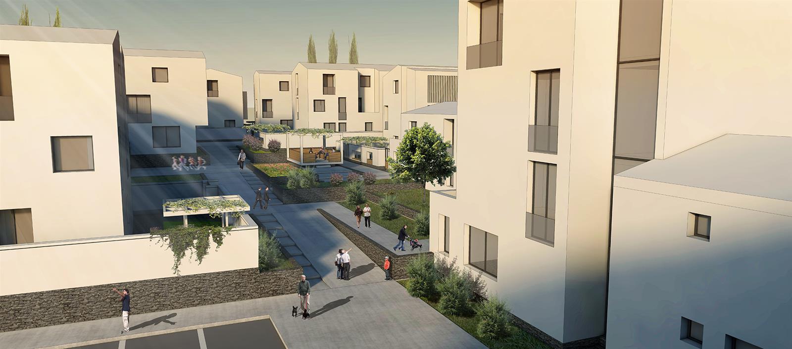 Çarşı / Projenin omurgası olarak kurgulanan ulaşım aksının iki yanına dizilen ticaret birimleri çarşıyı oluşturur. Cadde üzerine dizilen çarşı yer yer “plato” lara doğru girinti yaparak özelleşmiş avlulu mekanları ve meydanı tanımlar. Meydandaki cami ile de ilişkilenerek kendi iç meydanını oluşturduktan sonra çarşı kurgusuyla konut alanları ile ilişki kurar. Burada oluşturulan ticaret yoğunluğu ile çevresindeki ( Pamukkale, Develi, Küçükdere, Yeniköy) ve tasarlanan projedeki nüfusuyla birlikte yaklaşık 8000 kişilik bir nüfusa hizmet edebilmesi öngörülmüştür. Yaklaşık 3000 m2 kapalı ticaret planlanmıştır. Böylelikle bölge insanının bir çok ticari-sosyal faaliyetini Denizli Merkez’e gitmeye gerek kalmadan gerçekleştirebilmesi öngörülmüştür. Çarşı kurgusu itibariyle küçük esnafı teşvik eder nitelikte olup geçmişten bugüne alışageldiğimiz alış-veriş kültürünü yaşatmayı, canlandırmayı amaçlamıştır. Ayrıca çarşı ve meydan ile ilişkili olarak tasarlanmış olan “mahalle bostanı” bölge insanının toprak ile daha sık buluşacağı bir zemin oluşturmakla beraber, burada yapacağı faaliyetle de üretime katılmasını teşvik etmektedir. Meydan / Projenin merkezi bir noktasında kurgulanan meydan cami, çarşı ve çay bahçesi gibi sosyal donatılarla yaşayan güçlü bir odak haline gelmiştir. Bu meydanda buluşulur, mahalleye otobüsle geldiğinde burada inilir ve buradan çarşıya alışverişe gidilir, bir yere gidildiğinde otobüse buradan binilir. Bu meydanın etrafındaki mekanlarda çay içilir, dostlarla sohbet edilir. Günümüz şehirlerinde sokak artık sevimli bir hal almaktan çıkmış, hemen hemen her şehirde araçların işgal ettiği bir duruma bürünmüştür. Geleneksel yerleşimlerin dışında şehirdeki diğer sokaklarda vakit geçirmenin bir cazibesi kalmamıştır. Buradan hareketle proje kapsamında içinde araç trafiği barındırmayan, salt yaya hareketleri ve etkinlikleri için insan ölçeğinde tasarlanmış “arka sokak” lar kurgulanmıştır. “Arka sokak” tır çünkü bahçenin arka kapısından çıkarsınız ve kendinizi insan için oluşturulmuş bir kent mekanında bulursunuz. Daralıp genişleyerek kurgulanmış sokak hareketi sürpriz mekanları yaratmaktadır. Bu mekanlar çocuk oyunlarına imkan verecek şekilde düşünülmüştür. Peyzajın da içinde sürdürüldüğü “arka sokak” içinde yürümekten mutluluk duyulacağı bir kent mekanı olmuştur. Birbirleriyle süreklilik arz edecek biçimde tasarlanan sokaklar kullanıcıyı mahalle içerisinde herhangi bir noktaya yaya olarak konforlu bir biçimde ulaşmasına imkan vermektedir.