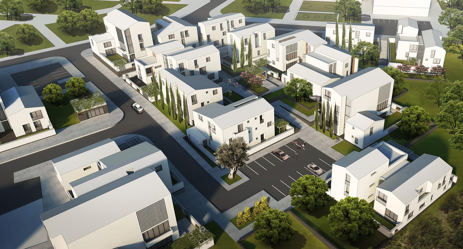 6. DOKUNUN OLUŞUMU / MAHALLE: Konut grupları, yol ağı ve sosyal-ticari donatılarla birlikte yeşil lekelerle de ilişki kurarak topografyaya uygun bir şekilde yerleşir. Mahalle dokusunu meydana getirir.