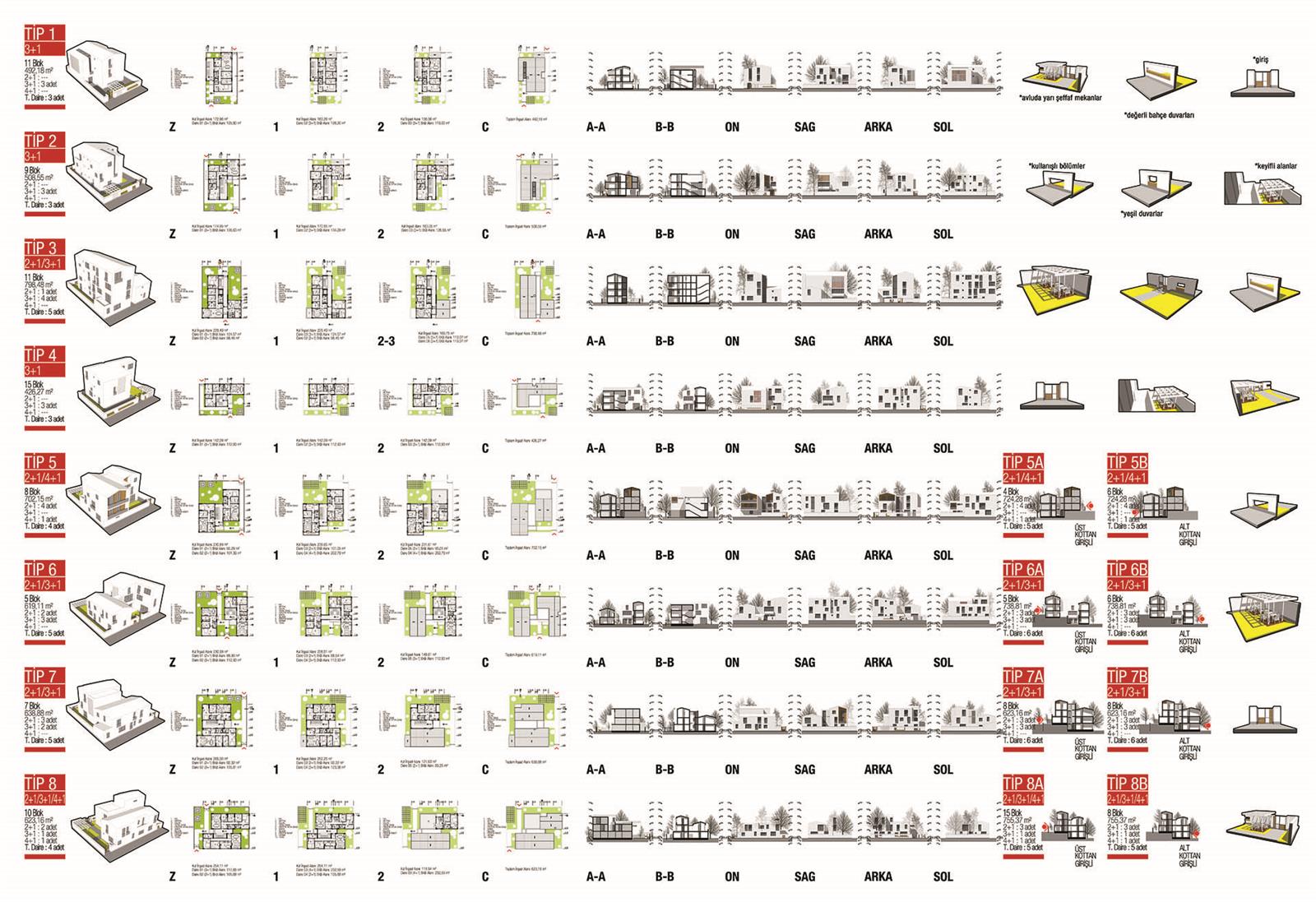 Öneri Ev: Geleneksel dokudaki ev ile bahçenin kurduğu ilişkiye öykünerek, bahçe geometrisi ve ev lekesi rasyonalize edilir. Geleneksel dokudakinden farklı olarak bu bahçeyi bir hane yerine 3 ile 6 arasında değişen haneler ortak kullanır. Dörtgen geometri ile oluşturulmuş “bahçe” içindeki “ev” ile çeşitlenerek konut tipolojisini oluşturur. Yine geleneksel dokuda olduğu gibi evler birbirine bitişerek konut dizilerini oluşturur. Konut dizileri bir araya gelerek kent mekanını tanımlarlar. Bahçenin ön kapısından hayata (avlu) ya, arka kapısından ise daralıp genişleyerek sürpriz mekanlar oluşturan sokağa çıkarsın.