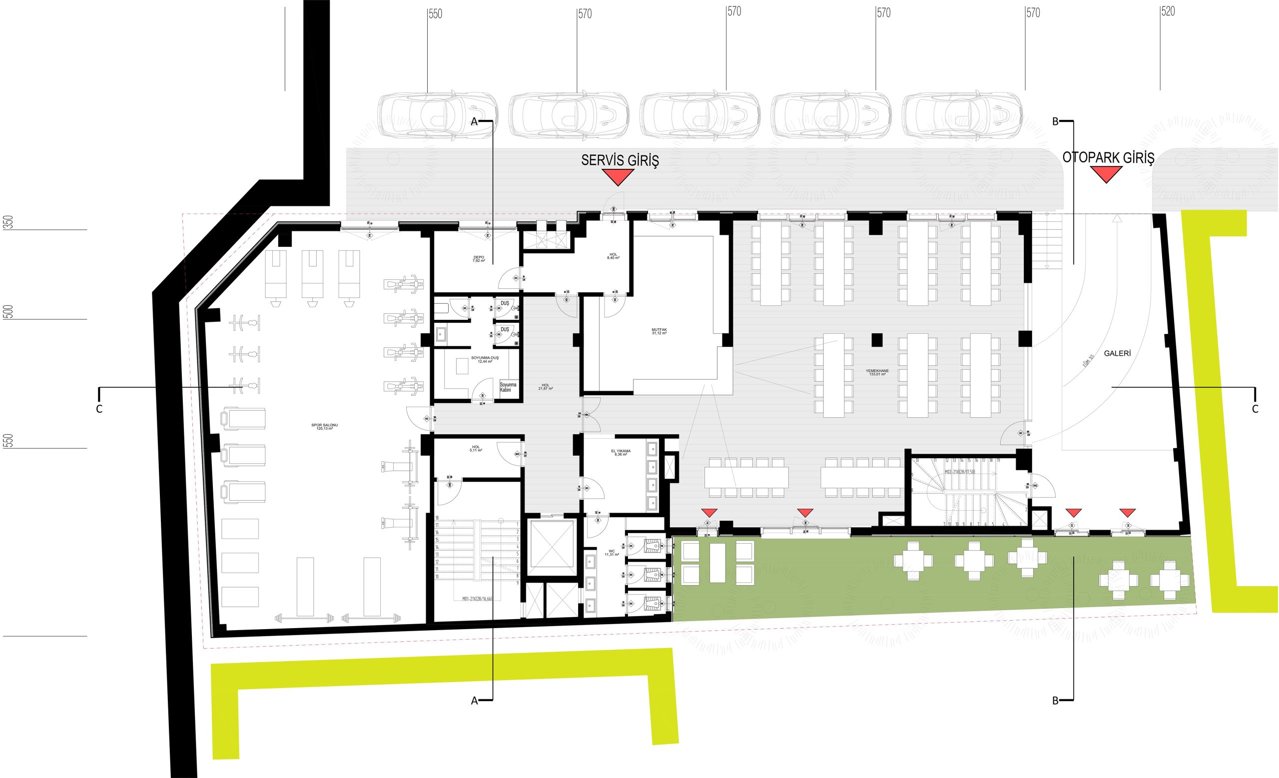 Planlama ve uygulama süreci boyunca ihtiyaç programı dahilinde kültürel referansların arandığı bir tasarım dili hedeflenmiştir. Yapı kottan dolayı bir kısmının açığa çıktığı -1. kat ve tamamen otopark olarak çözülmüş -2. kat olacak şekilde 2 bodrum kattan oluşmaktadır. -2. bodrum katta otopark ve teknik birimler -1. bodrum katta ise spor salonu, mutfak ve yemek yeme birimleri konumlandırılmış. Bu kattan açık mekan olarak arka iç avlu bahçesine erişilir. Zemin giriş katında fuaye, bekleme alanları ve konferans vermeye de elverişli çoklu etkinliklere imkan sağlayan sergi salonu yer almaktadır. 1. katta yönetim ofisleri ve kütüphane birimleri, 2. katta derslikler. 3. katta ise konaklama birimleri yer almaktadır.