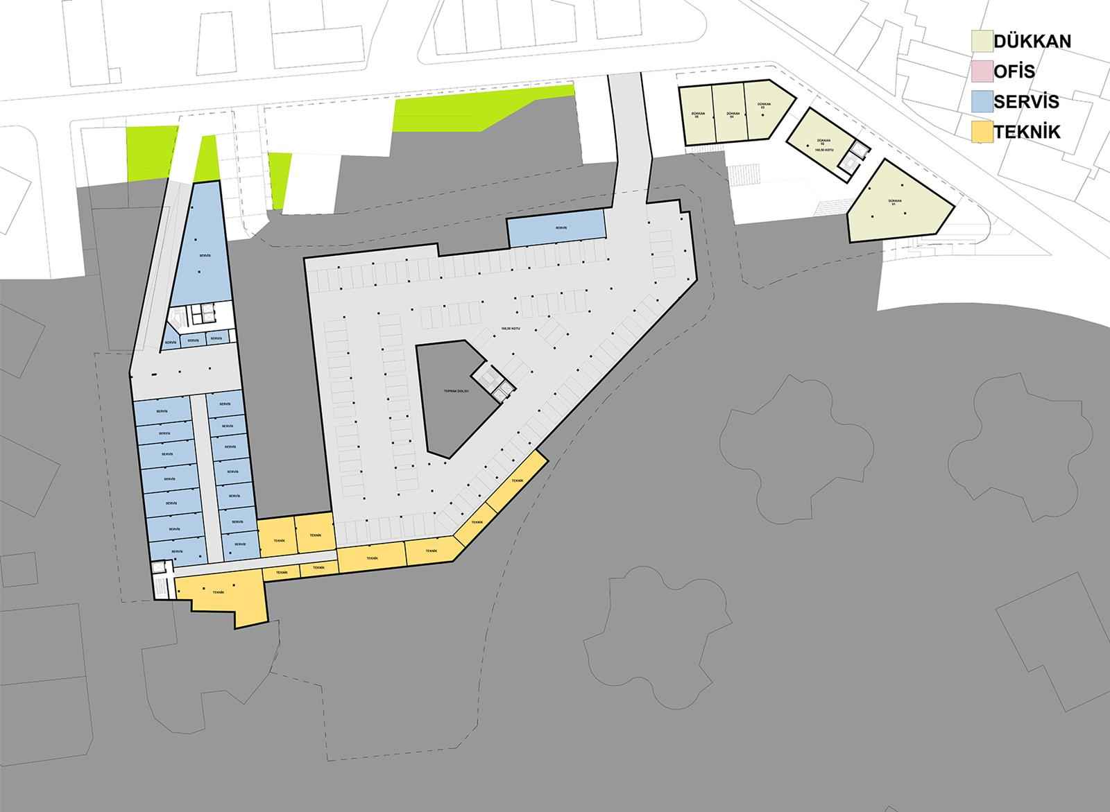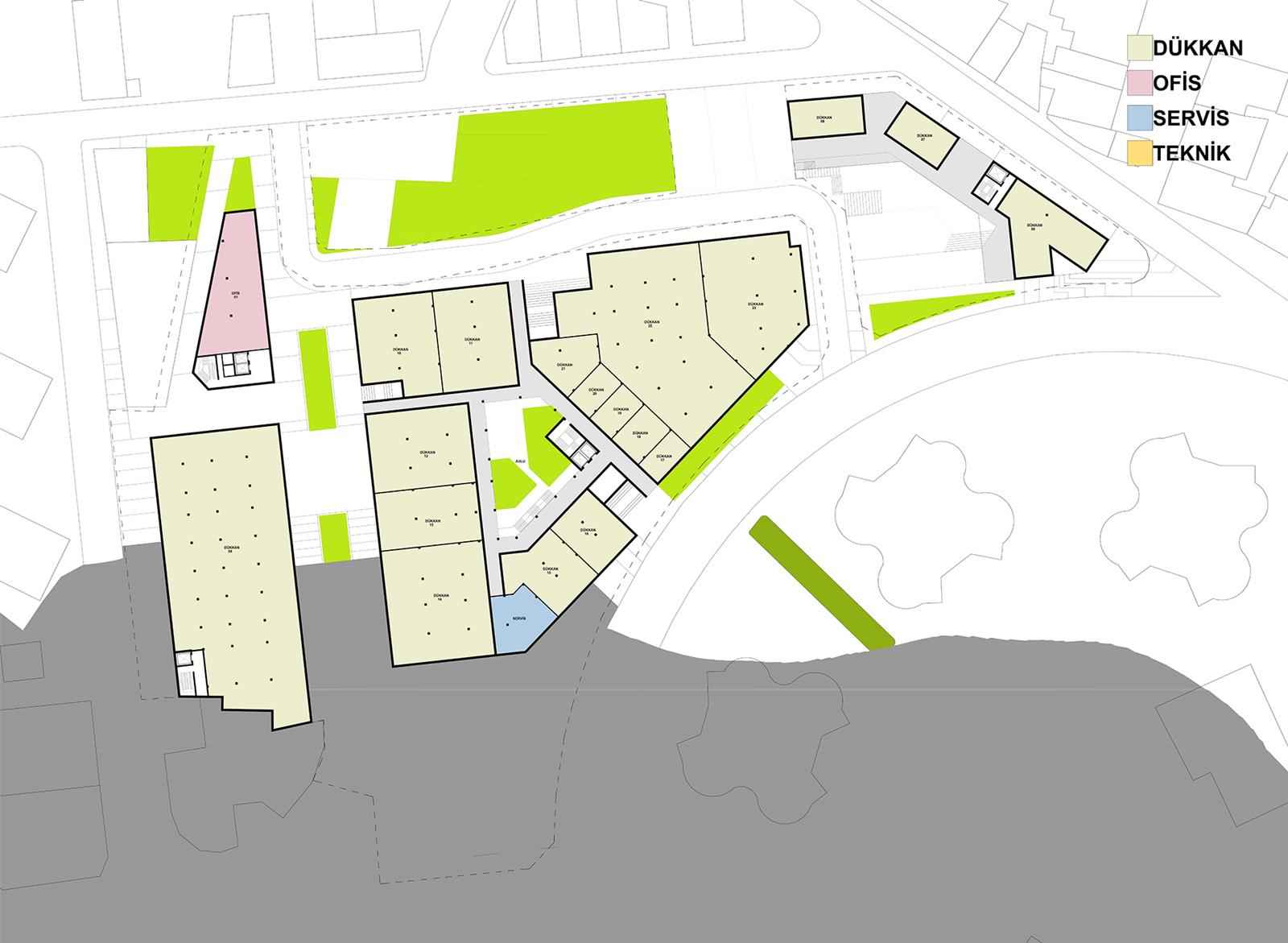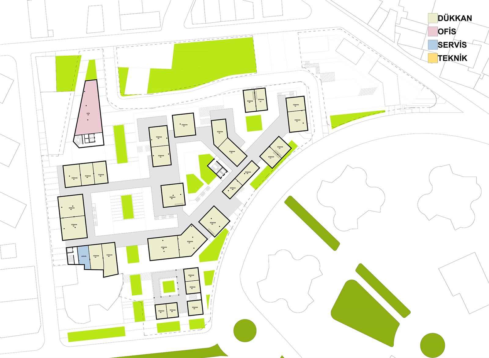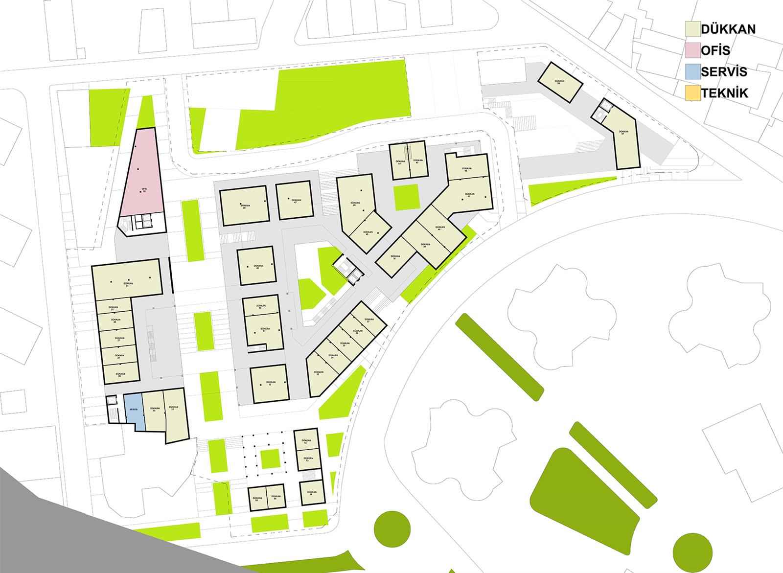 Bursa’nın avlulu, dikdörtgen formlarında, hem içe dönük hem dışa temas eden ticaretin kalbinin attığı hanlar bölgesi referans alınarak yeni proje tasarım kararları belirlenmiştir. Temel gereksinimler listesi olan ihtiyaç programı bu bağlamda şekillenmiştir. Kültürel değerlere sırt çevirmeyen, az katlı, avlulu ve parçalı yerleşim kararları ile Bursa için yeni bir çarşı tasarlanmıştır. Tasarım çıkış hikayesi düşey ve yatay sirkülasyonlara takılmış ana işlevli prizmalar / küpler şeklindedir. Tüm yapı plastiği ve doluluk / boşluk dengesi bu hikayenin destekleyicisi niteliğindedir.