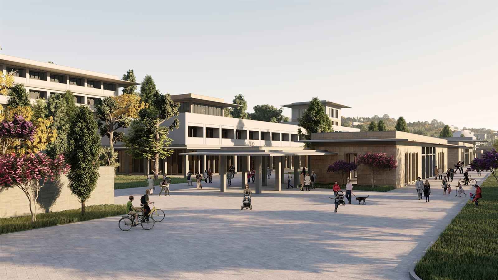 Damlı dikdörtgenler prizmalarından oluşan yapı plastiği parçalı kütle hareketleri ile monolok etkiden kurtarılmış ve sürprizlerle dolu mekanların oluşması sağlanmıştır. Birimleri oluşturan dikdörtgen prizmalardan yatay sirkülasyonu desteklemek adına saçaklar uzanmış ve yarı açık mekanlar ile sosyal hayat zenginleştirilmiştir.