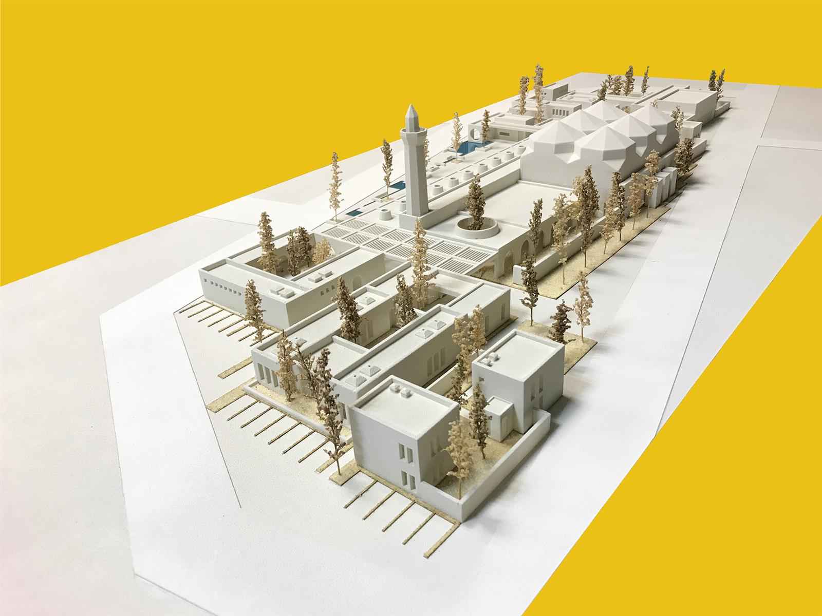 Arazinin merkezinde, buluşma eyleminin kaynağını temsil eden mahalle cuma camisi konumlanmıştır. Eğitim yerleşkeleri, ticaret fonksiyonları, kültür alanları, ıslak destek mekanları ve etkinlik alanları gibi bir çok avlulaşmış yapı öbeği mahallenin kültürel etkinliklerine ev sahipliği yapacak olan cami ile güçlü ilişki kuracak biçimde tasarlanmıştır.