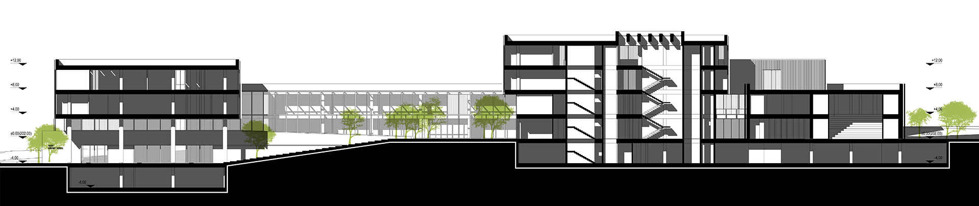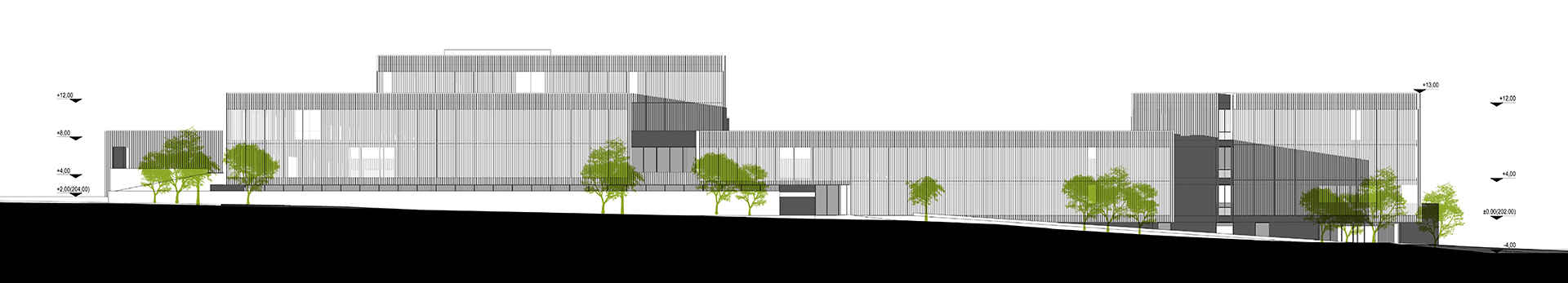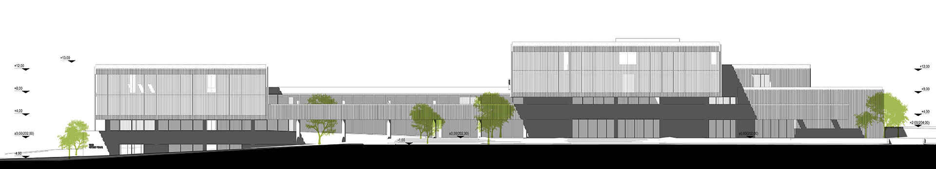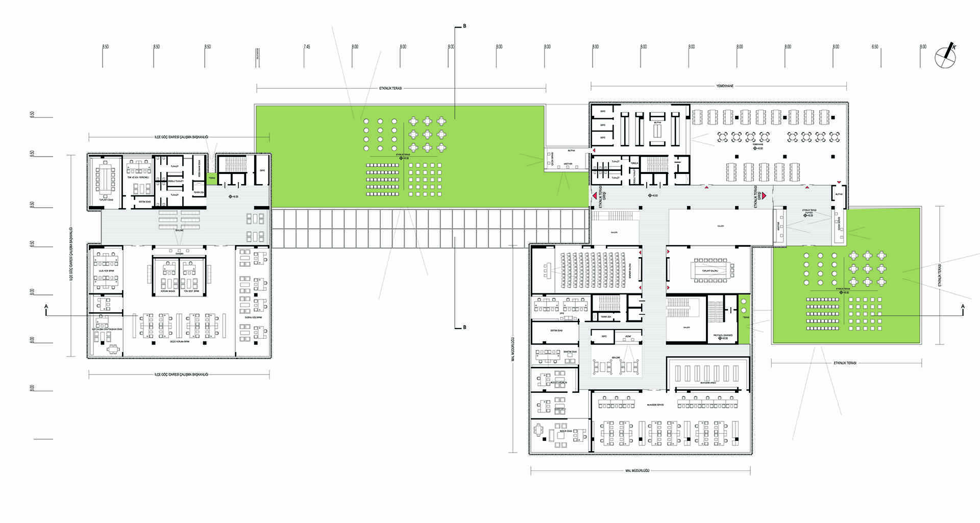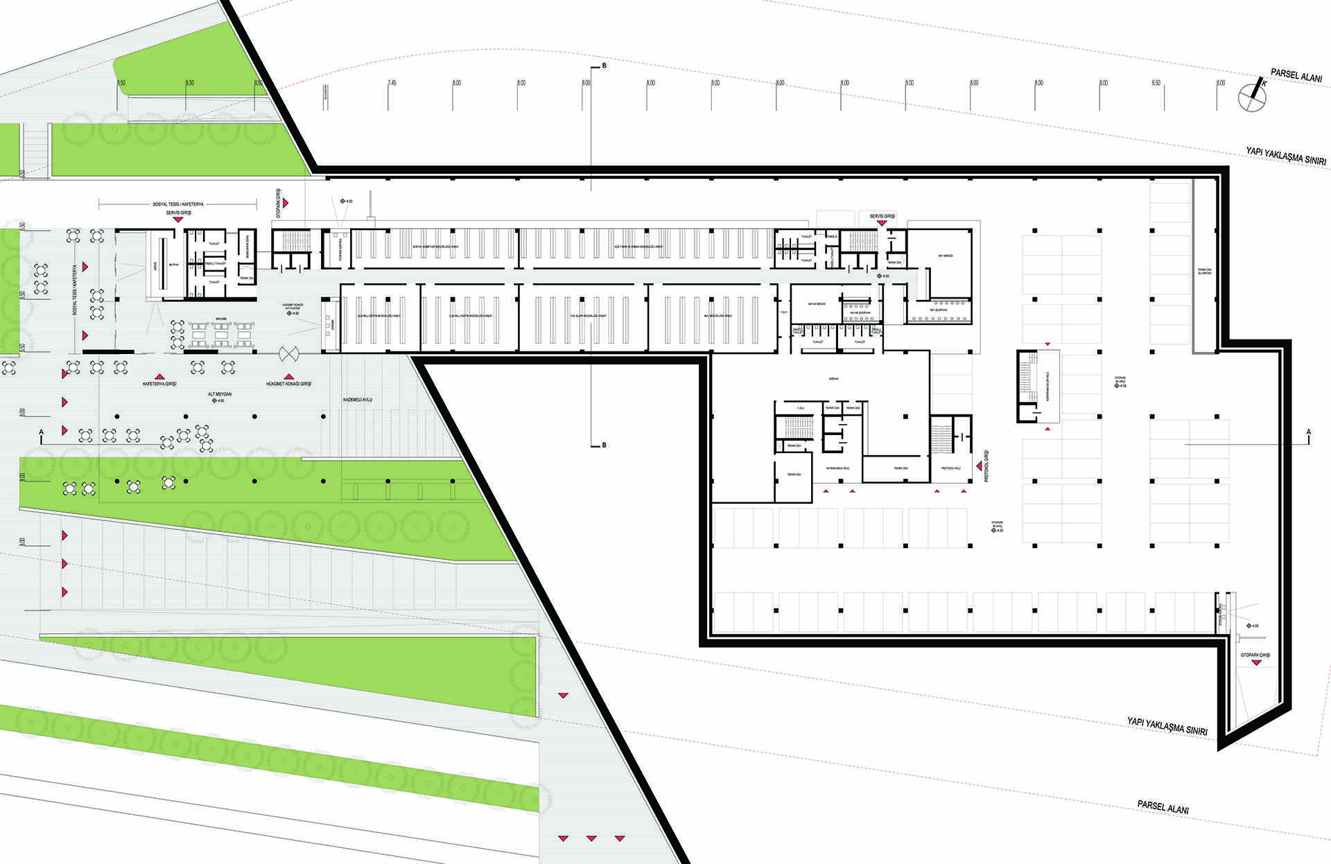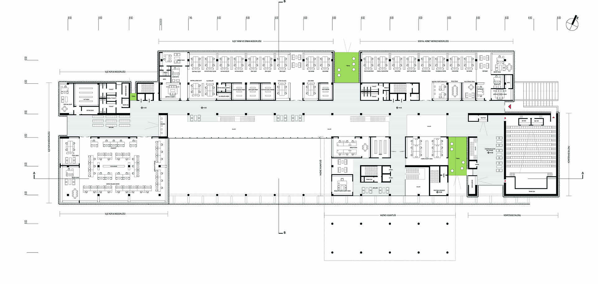Alanın kuzeyinde lineer bir biçimde, arazi eğimine göre kademeli olarak uzanan kütlede ise milli eğitim ilçe müdürlüğü, tarım ve orman müdürlüğü ile sosyal hizmet merkez müdürlüğü bulunur. Bu kütle önündeki atriumla birlikte yapı parçalarını bir araya getiren bir bağlaç görevi görür.