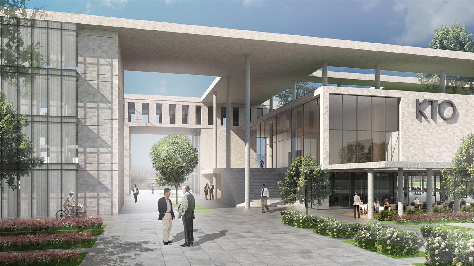 Birinci Zone, yapı adasını ikiye bölen şehirle güçlü bağ kuracak olan yaya aksını ve kompleksin girişini tarifleyen sokaktır. Kuzeye uzanan bir sokak kurgusunda işlevine göre parçalanmış yapıyı birbirine bağlayan bir arakesittir. Yaratılan bu iç sokak aynı zamanda açık/yarı açık gölgelikli mekân fonksiyonu bağlamında bir toplaşma alanıdır. Gelecekte yapılaşması düşünülen rezerv alan ile Kocasinan Bulvarı arasında KTO yapısının içine aldığı bir geçiştir.