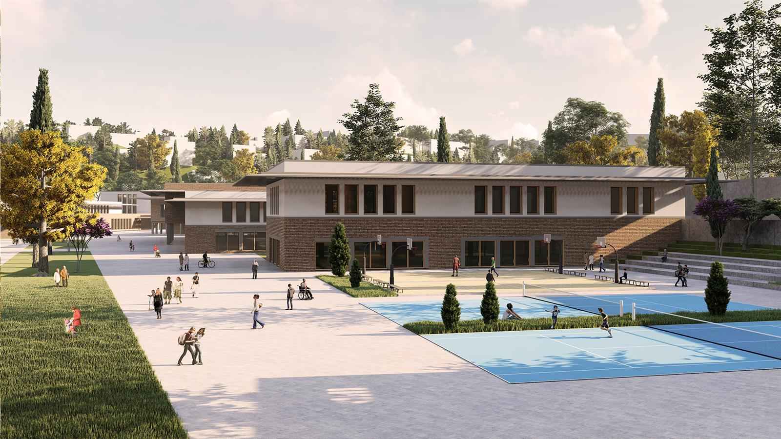 Damlı dikdörtgenler prizmalarından oluşan yapı plastiği parçalı kütle hareketleri ile monolok etkiden kurtarılmış ve sürprizlerle dolu mekanların oluşması sağlanmıştır. Birimleri oluşturan dikdörtgen prizmalardan yatay sirkülasyonu desteklemek adına saçaklar uzanmış ve yarı açık mekanlar ile sosyal hayat zenginleştirilmiştir.