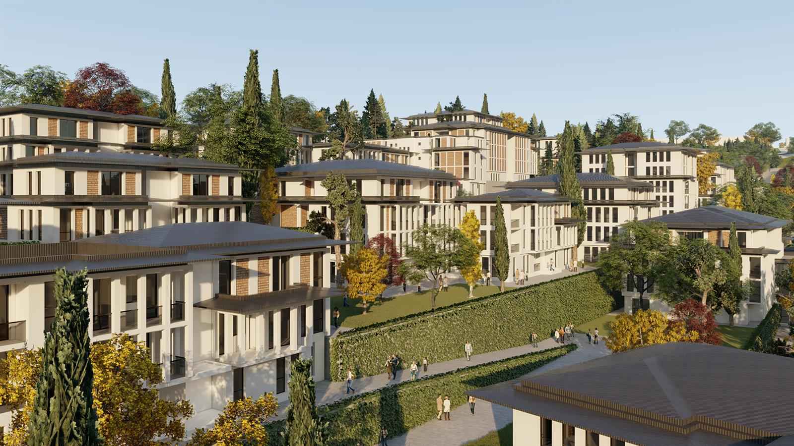 Konaklama birimleri eğimli yamaçta, sosyal ve ticari birimler ise eğimin daha az olduğu alanlarda kurgulanmıştır. Tasarlanmış ve setlenmiş zeminlere oturan konutlar için ufki olarak doğal havalandırma ve ışık almanın yanı sıra ön açıklığı da hedeflenmiştir. Marmara denizinin olağanca manzarasına yönelen bağımsız birimler nitelikli günümüz çağdaş ihtiyaçlara uygun yapı malzemeler ve mekan çözümleri ile desteklenmiştir.