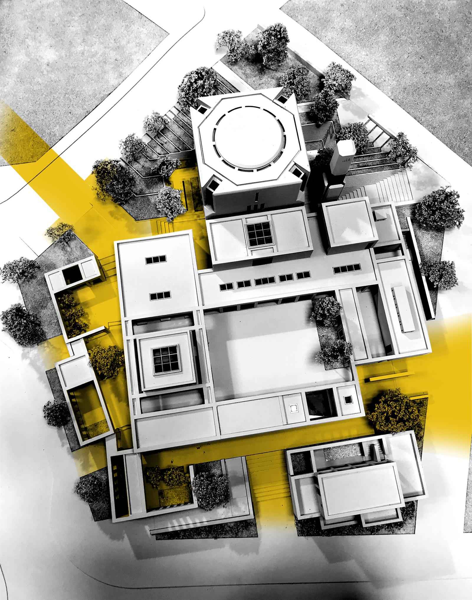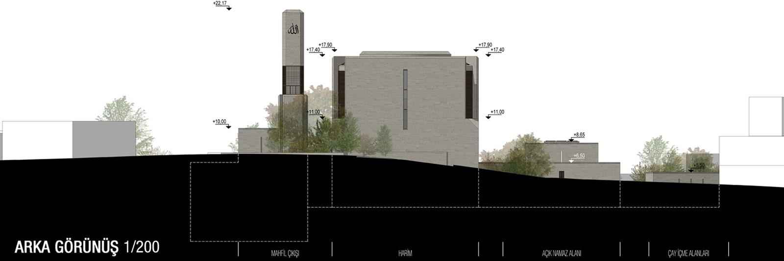 Mardin şehri üzerinden geliştirilen “öneri yapılı çevre” bağlamında cami önerisi bölgenin karakterine uygun olarak avlulu, gölgelikli alanlar oluşturan bir kurgu dahilinde şekillendirilmiştir. Caminin mahalle hayatına katılan bir karakterde olabilmesi için bu avluya erişim katmanlı ve geçirgen olacak şekilde bir çok noktadan sağlanmıştır.