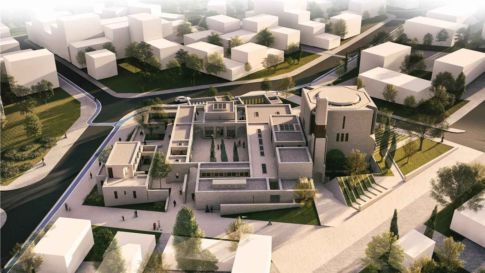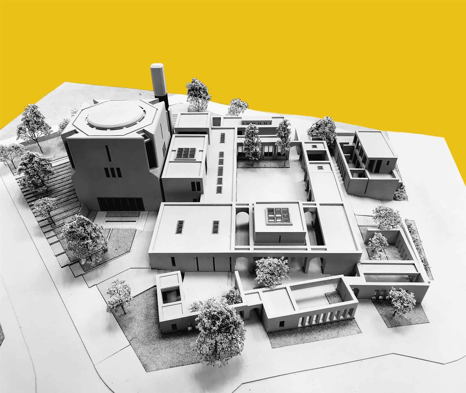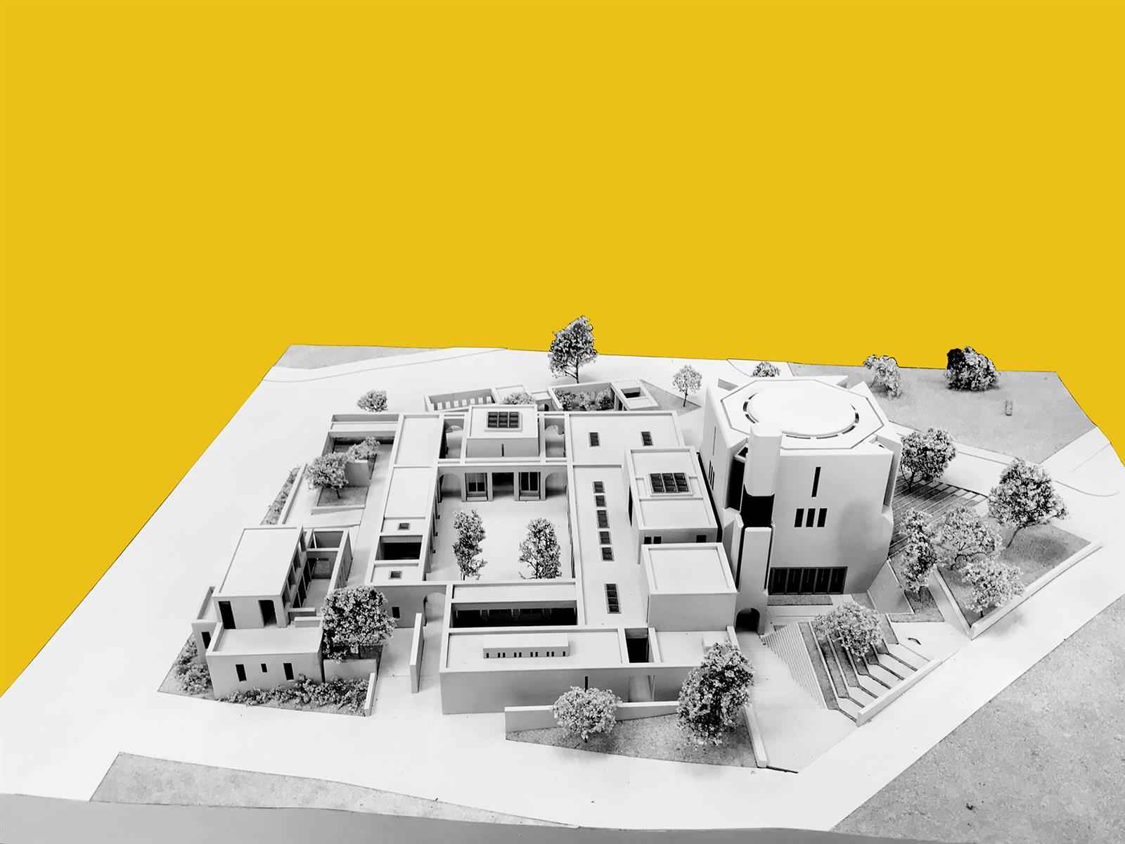 Verilen imar planındaki konut ve donatı alanları üzerinde yukarıda bahsedilen Mardin şehir dokusu karakteristiklerinin bugünün ihtiyaçları ve yapı kurma alışkanlıkları ile beraber ele alnarak, az katlı, avlulu bir mahalle önerisi geliştirilmiştir. Böylelikle cami tasarımının şekilleneceği alanın kentsel bağlamı kurgulanmıştır. Tasarım bu “öneri yapılı çevre” (Şekil-4) bağlamında şekillenmiştir.